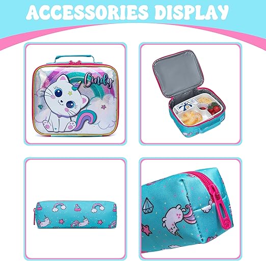 Conjunto Escolar Trolley Gatinha - Trolley + lancheira + porta-lápis