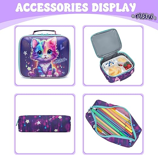 Conjunto Escolar Trolley Gatinha - Trolley + lancheira + porta-lápis