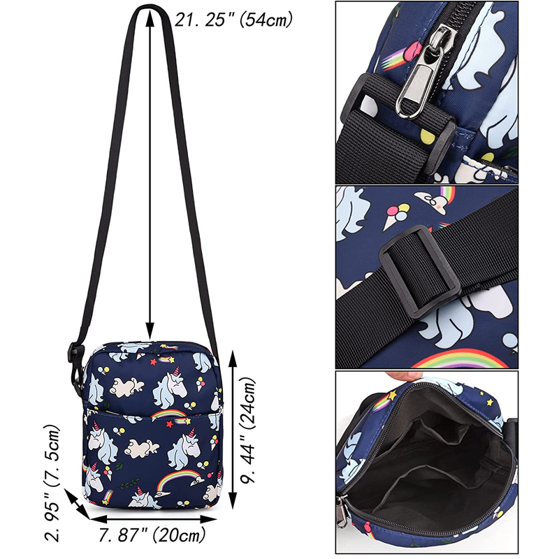 Fácil de organizar: 1 secção grande de fecho de correr, 1 bolsos frontais com fecho de correr, 2 bolsos laterais para garrafas de água. Também inclui uma bolsa de ombro e um estojo para lápis com fecho de correr.