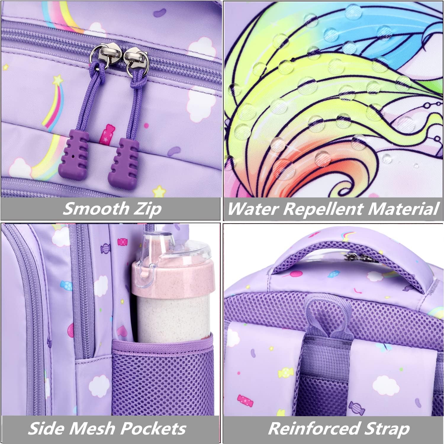 Impermeável e fácil de limpar - a mochila escolar para meninas é feita de material de nylon de alta densidade, que é impermeável e fácil de limpar, resistente a arranhões e ao desgaste e durável. Além disso, a nossa mochila de dia é testada para garantir um uso seguro.