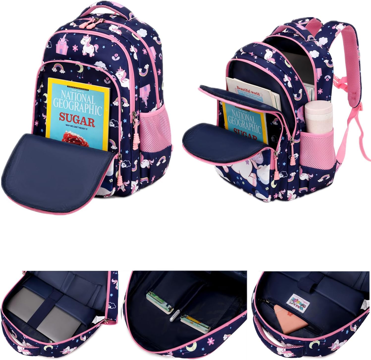 Impermeável e fácil de limpar - a mochila escolar para meninas é feita de material de nylon de alta densidade, que é impermeável e fácil de limpar, resistente a arranhões e ao desgaste e durável. Além disso, a nossa mochila de dia é testada para garantir um uso seguro.