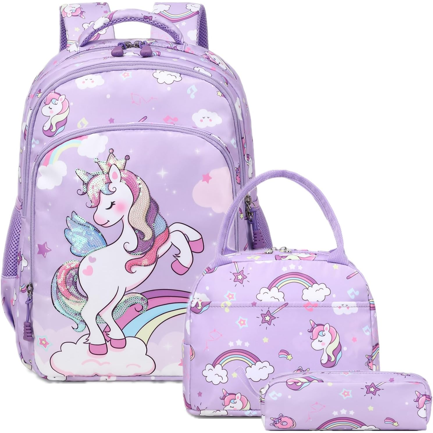 Conjunto Escolar Unicórnio - Mochila + lancheira + porta-lápis