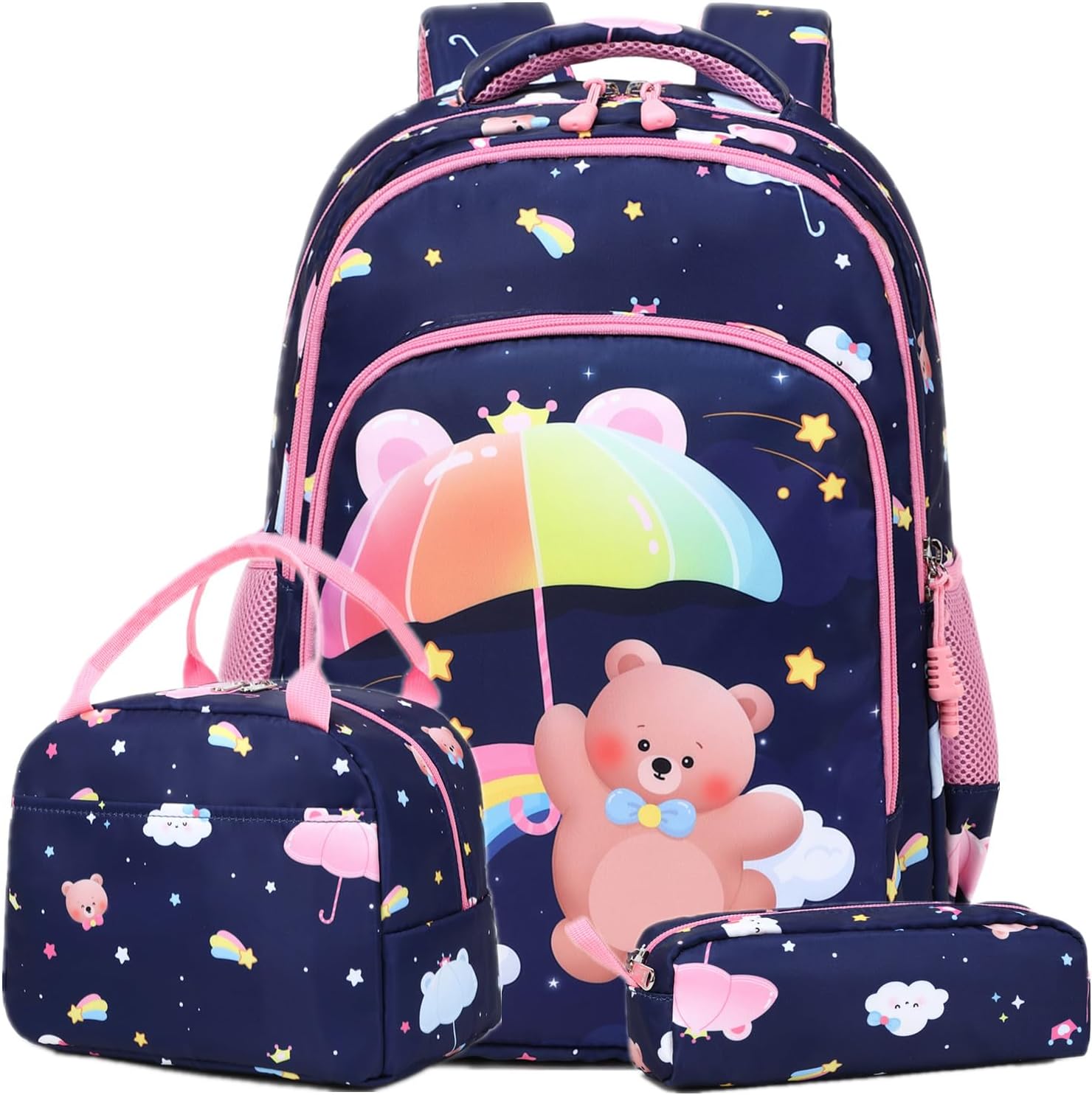 Conjunto Escolar Ursinho - Mochila + lancheira + porta-lápis - várias cores