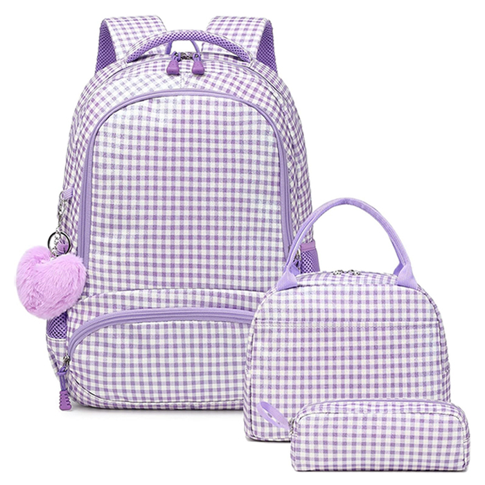Conjunto Escolar Xadrez Purple - Mochila + lancheira + porta-lápis
