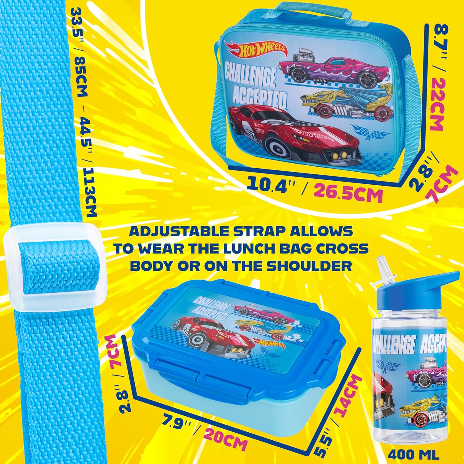 Conjunto Lancheira térmica + garrafa + sanduicheira Hot Wheels