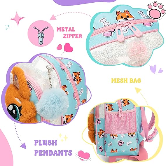 Conjunto Trolley Escolar Fluffy Cão - Trolley Escolar + lancheira + estojo