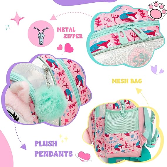 Conjunto de 3 peças: Além da mochila escolar com rodas principal, este conjunto também inclui uma prática bolsa para lanche e um estojo. O bolso principal pode acomodar cadernos A4 e os bolsos laterais para garrafas de água. Os sacos também podem ser usados para guardar o lanche das crianças.