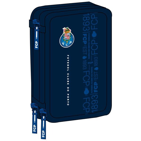 Estojo Futebol Clube do Porto de 3 fechos, com material escolar e de desenho. Fabricado em poliéster vermelho resistente com interior rígido, forrado. Organizado em três tabuleiros: