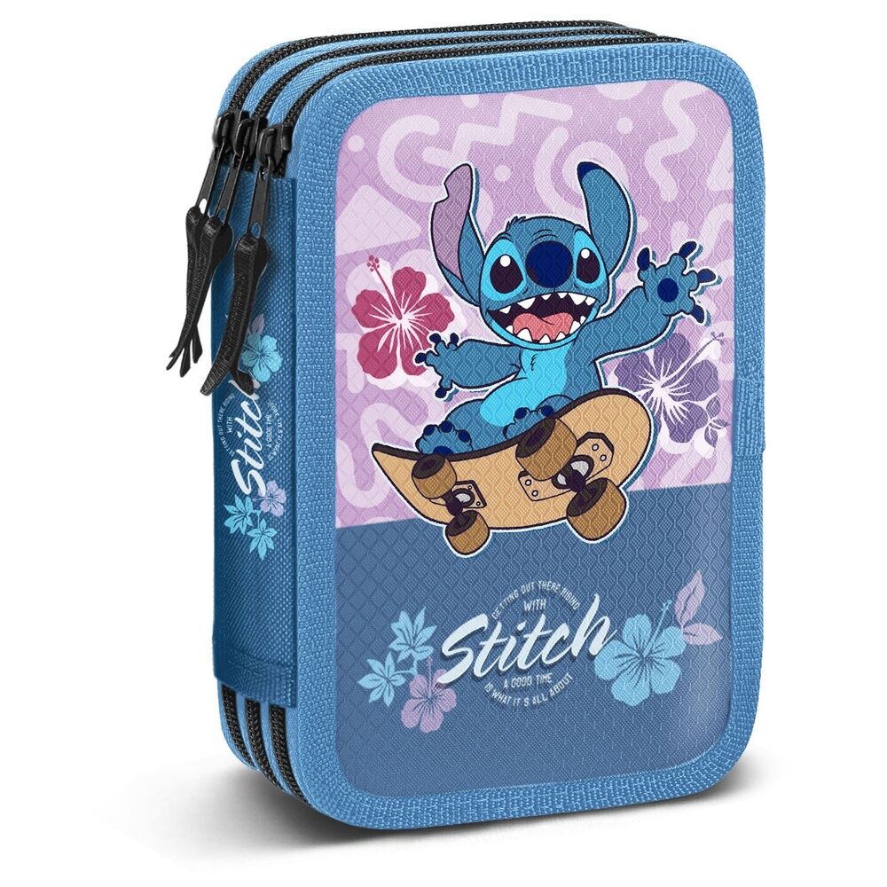 Estojo com material Skate Stitch Disney triplo