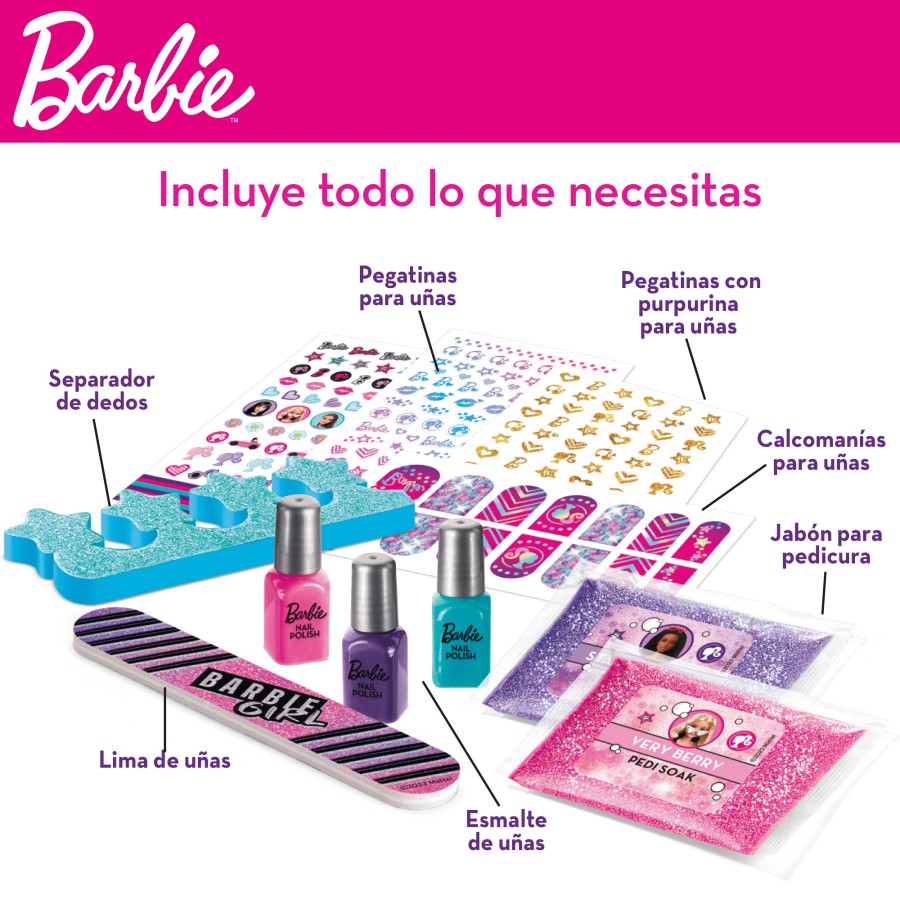 Crie belos designs e obtenha unhas modernas com o conjunto de manicure e pedicure da Barbie!