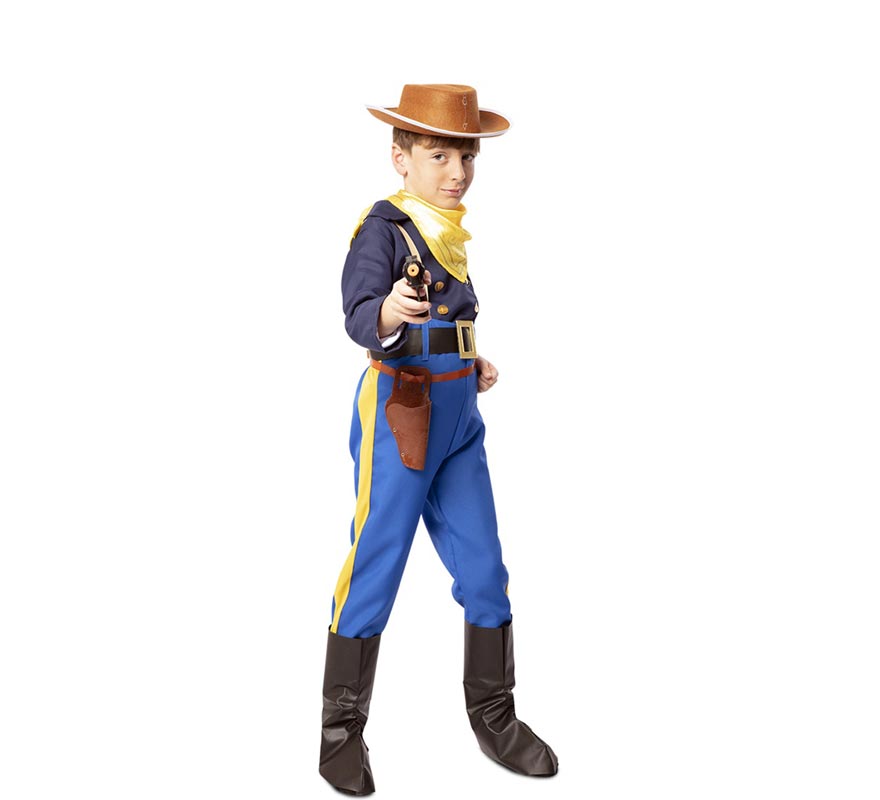 Fato de Capitão Wayne Sétima Cavalaria para criança. Inclui camisa, calças com suspensórios, lenço, cinto, tapa-botas. Não inclui chapéu, coldre ou arma