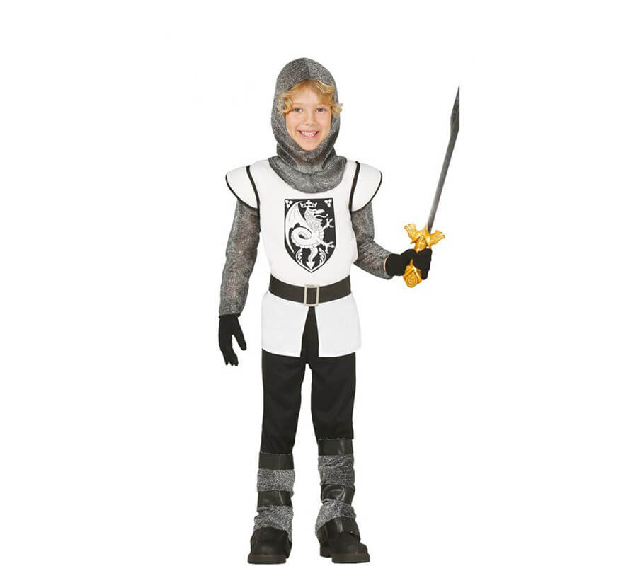 Fato o Disfarcede cavaleiro medieval para crianças em vários tamanhos. É composto por Casaca, Capuz, Cinto e Calças. Não inclui luvas, espada ou botas.