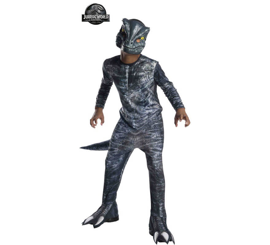 Fato o DisfarceJurassic World Classic Velociraptor ou Dinossauro para criança, licenciado oficialmente pelo Jurassic Park ou pelo Jurassic Park. Inclui macacão com tapa botas, cauda e máscara.