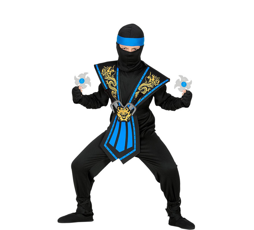 Fato de Ninja Kombat azul para menino com armas