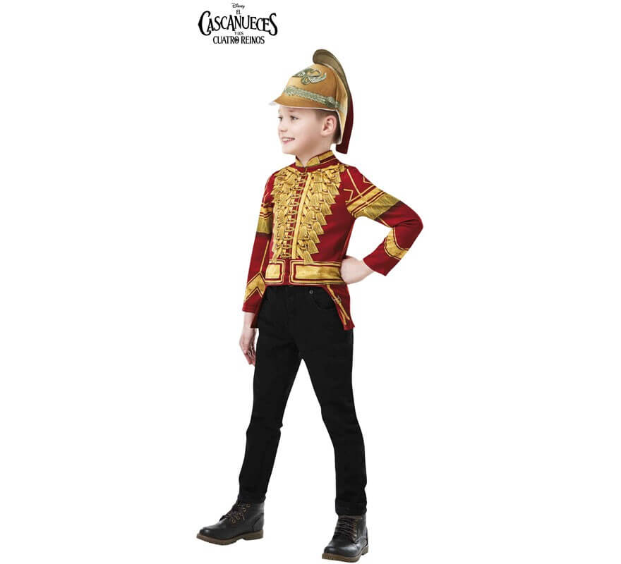 O traje clássico do Príncipe Philip, Quebra-Nozes para criança, licenciado oficialmente pela Disney como O Quebra-Nozes e os 4 Reinos (O Quebra-Nozes e os Quatro Reinos). Inclui camisa e capacete estampados. Não inclui calças ou sapatos.