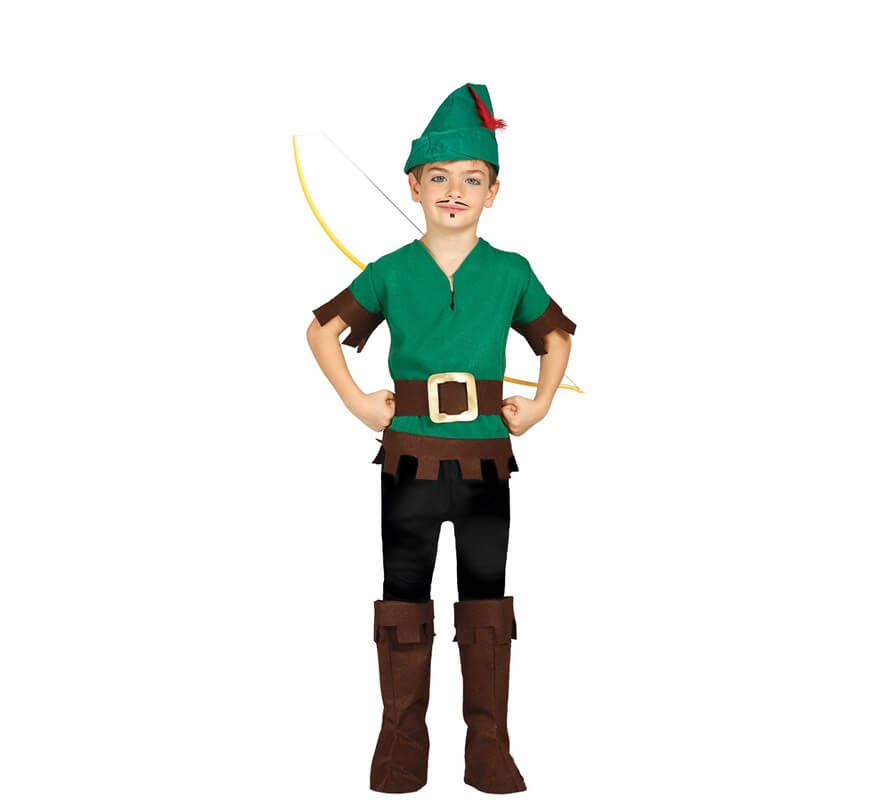 Fato o Disfarcede Robin Hood para menino. Disponível em tamanhos de 3 a 10 anos quando criança. Inclui casaco, calças, cinto e gorro com penas. NÃO inclui machado ou sapatos.