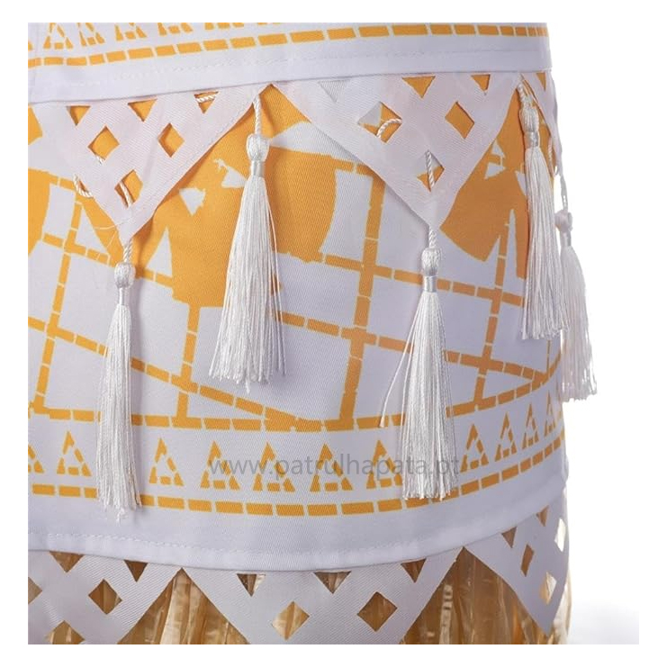 Vestido elegante em camadas composto por uma saia com borlas, uma cobertura de saia e uma faixa de gravata vermelha. O padrão especial na parte superior e o laço, e os detalhes na capa da saia adicionaram um toque final à roupa!