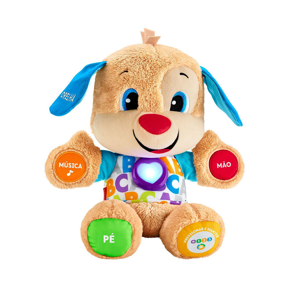 Diz olá ao teu primeiro melhor amigo, bebé! O Cãozinho é macio, adorável e está pronto a assegurar que a aprendizagem divertida nunca acaba. Responde ao toque do bebé com canções fantásticas e frases que apresentam mais de 100 palavras, partes do corpo, cores, formas e muito mais! E porque cada bebé se desenvolve ao seu ritmo, o Cãozinho inclui Tecnologia Inteligente para poder escolher o nível mais adequado ao seu bebé. Há uma variedade de canções, sons e frases em cada um dos três níveis de brincadeira. O coração multicolorido do Cãozinho que se ilumina até acompanha o ritmo da música! Nível 1 Explorar O bebé pode pressionar as mãos, o pé, o coração, o nariz ou a orelha do Cãozinho para ouvir as primeiras palavras, as cores, o alfabeto, as partes do corpo e muito mais! Nível 2 Estimular Neste nível, o bebé é recompensado com frases divertidas enquanto é incentivado a contar, descobrir cores e identificar partes do corpo! Nível 3 Imaginar O Cãozinho está pronto para brincadeiras imaginativas com canções para acompanhar e frases que incentivam as crianças a dar asas à imaginação enquanto expandem o seu vocabulário! Um Produto Mattel FPM56 Produto contém 3 Pilhas/Baterias: AA (R6) Carbon Zinc