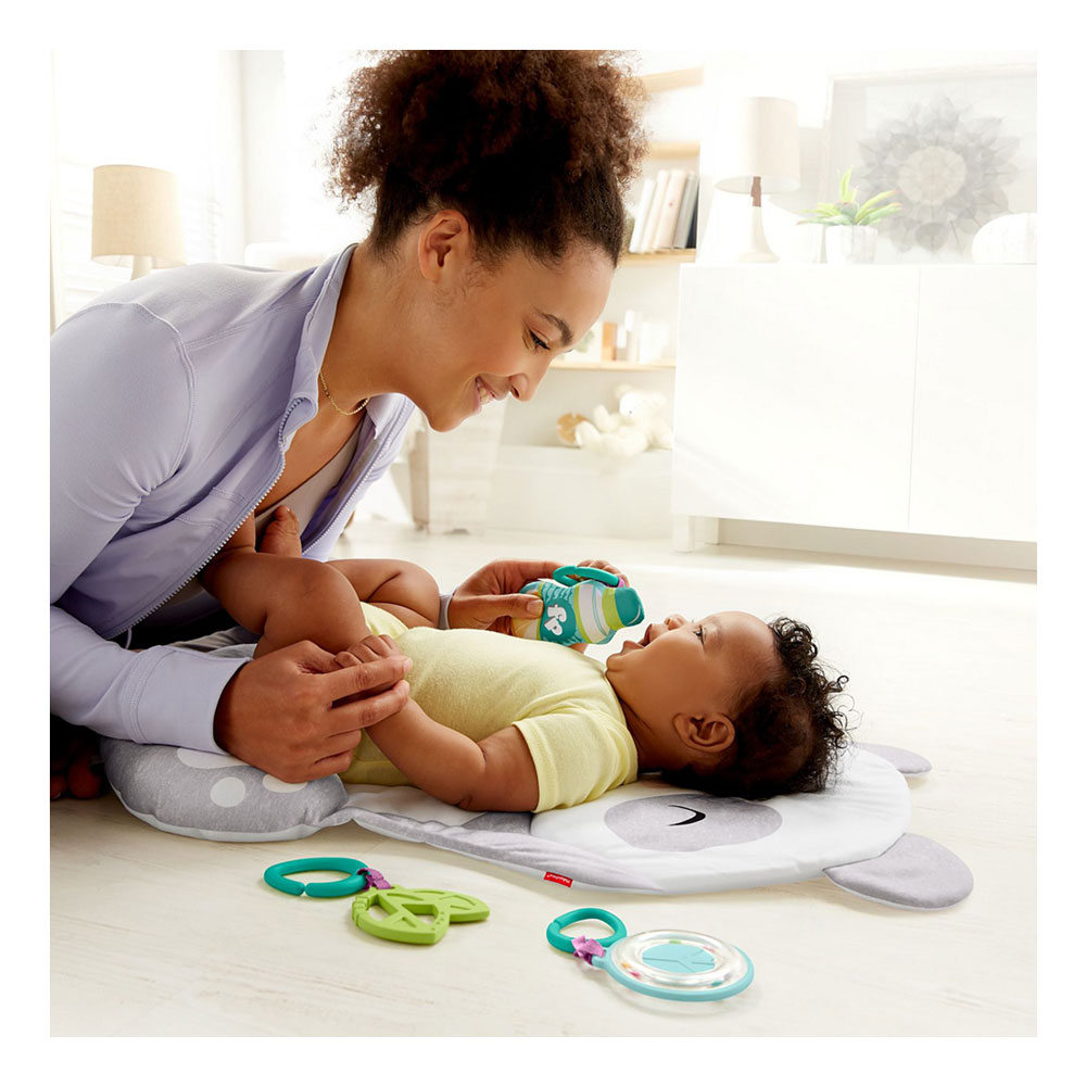 Fisher-Price Alfombra acolchoada com acessórios para bebés, estampado panda, presente para bebés.