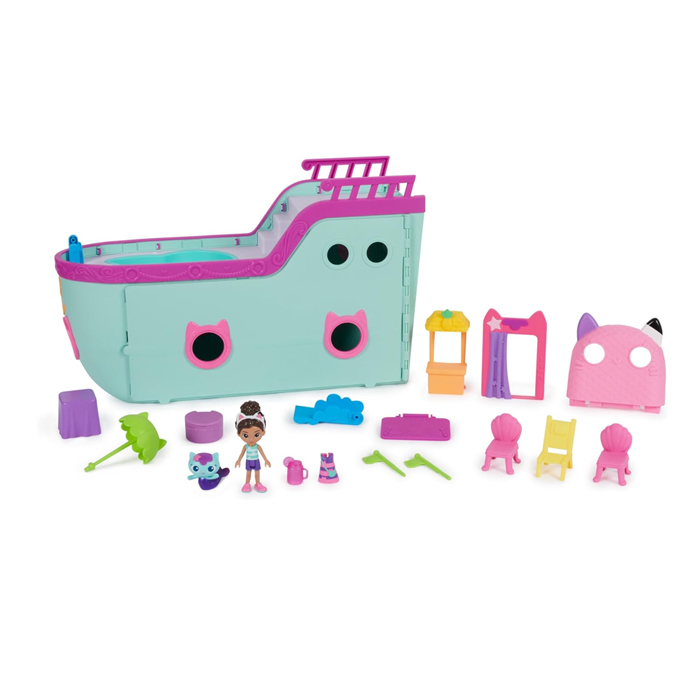 Cruzeiro de brincar desportivo: Navegue pelos mares imaginários com Gabby e Gatirena. Este fascinante conjunto de jogos de 18 peças possui uma piscina com uma barra de batidos, uma discoteca com uma bola de discoteca iluminada e uma cabine fotográfica Compatível com GABBY'S DOLLHOUSE: Depois de passar um dia navegando nos mares imaginários, atraque o seu cruzeiro transformando o trampolim numa rampa para conectá-lo à casa de bonecas gatuna de Gabby (a casa de bonecas é vendida separadamente) Caixa surpresa e brinquedos surpresa: O conjunto inclui uma grande quantidade de móveis de casa de bonecas, como mesas e cadeiras, um guarda-sol e uma cabine fotográfica com acessórios para fotografias. Em seguida, abra a caixa surpresa e descubra um brinquedo surpresa Construa o universo da casa de bonecas: De quartos temáticos e móveis para casas de bonecas a figuras de brinquedo e conjuntos de jogos, crie um universo de casas de bonecas com o qual as crianças poderão desenvolver a sua imaginação através do jogo de simulação Inclui 1 cruzeiro, 1 figura Gabby com uma roupa adicional, 1 figura de Gatirena, 1 caixa surpresa, 18 peças Colecione-os todos: Os brinquedos pré-escolares da Gabby's Dollhouse são presentes ideais para meninos e meninas que gostam de brincar com bonecas e acessórios, brinquedos com surpresa, animais de peluche, quebra-cabeças e jogos de mesa