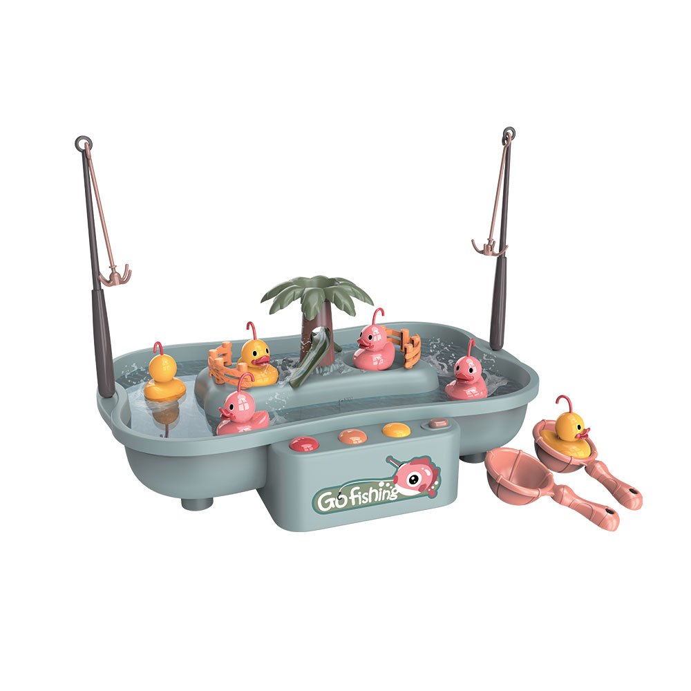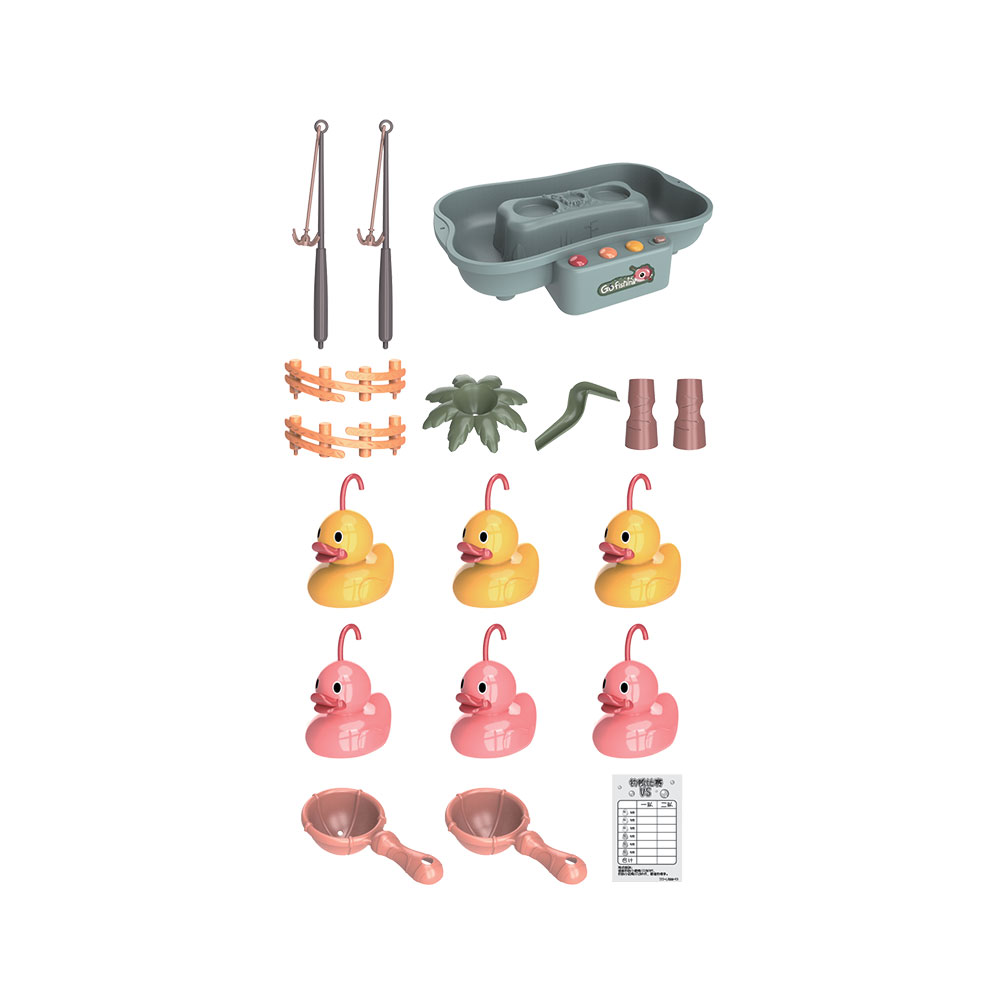 Clássico de Pesca adaptado e modernizado: com este jogo para 2 jogadores, existe um divertido circuito de água ativo que transforma o tabuleiro num ciclo infinito de rotação onde circularão os diferentes patinhos coloridos. O objetivo do jogo é "pescar" através de 2 canas tipo anzol o maior número de patinhos. Inclui 2 conchas que permite colocação de água controlada para dificultar a "pesca".