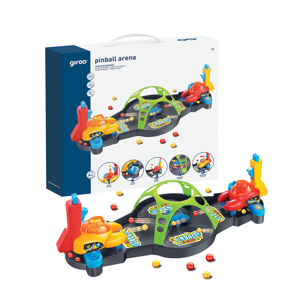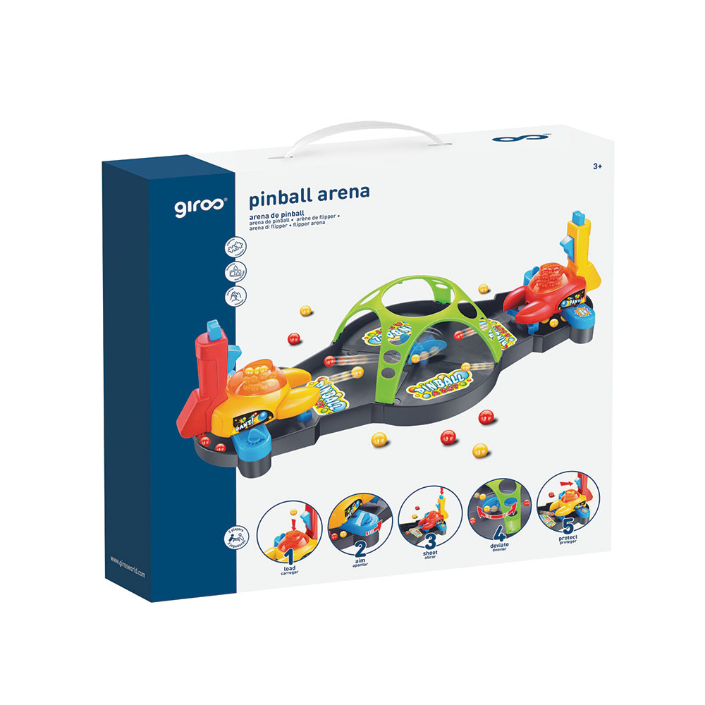 Clássico jogo Pinball dispensa apresentações. Jogo divertido que permite jogar em simultâneo até 2 jogadores. Cada um tem como objetivo principal laçar bolas coloridas e colher o maior número possível de bolas da cor adversária. Com este Pinball especial, existe um mecanismo no meio que permite que as bolas lançadas alterem completamente a sua trajetória. Regras e instruções detalhadas no interior.
