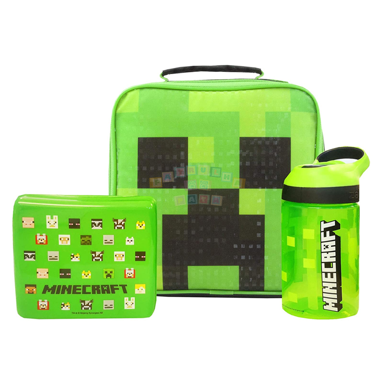Kit Minecraft - Lancheira térmica + cantil + sanduicheira