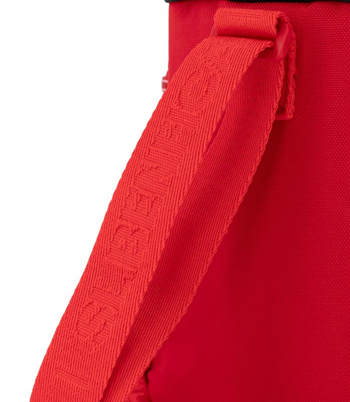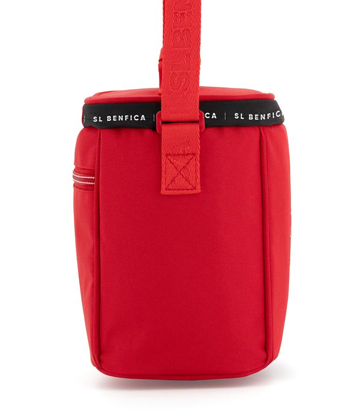 Lancheira térmica SL Benfica em poliéster vermelho durável, com um design compacto e funcional. Compartimento principal com puxadores duplos e uma abertura ampla para fácil acesso. Fecho frontal com lettering SL Benfica e precintas personalizadas robustas.