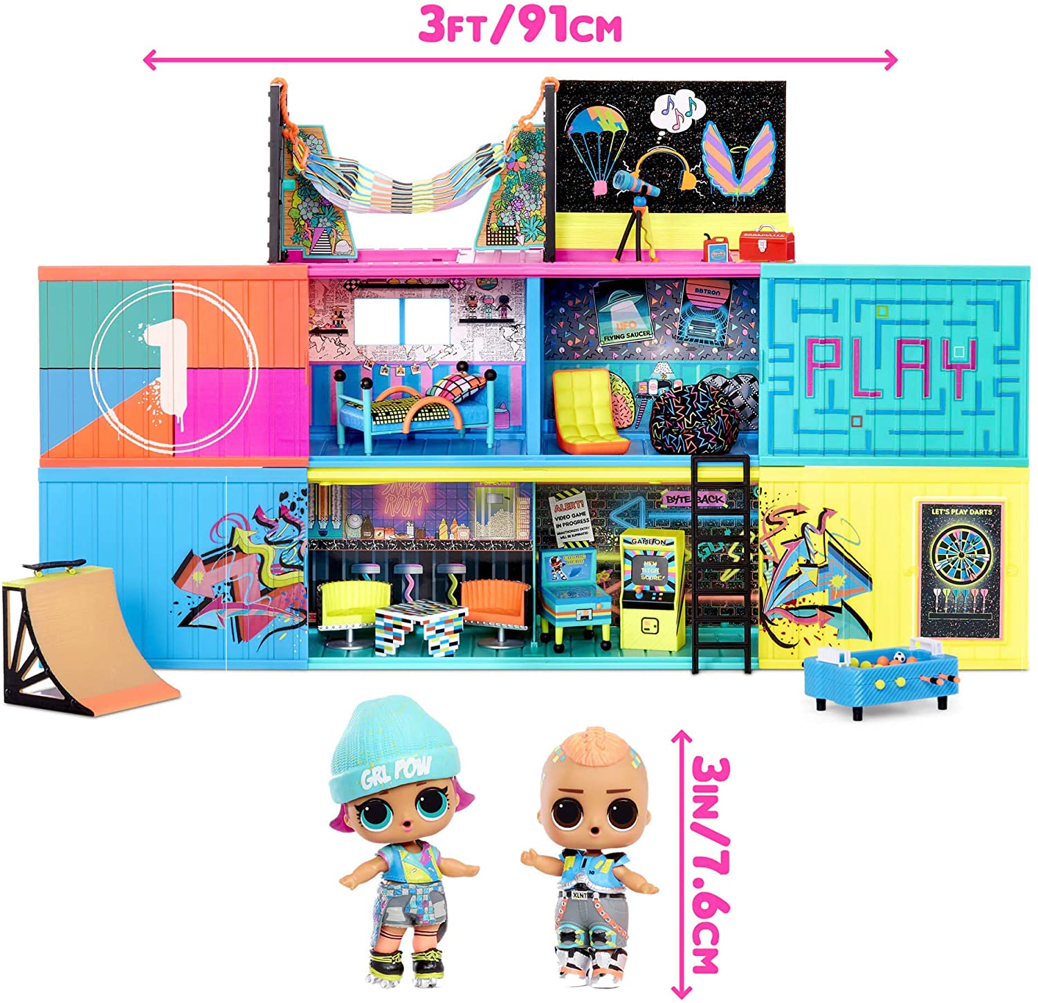 LOL Surprise, Casa de bonecas com mais de 40 surpresas, 2 bonecas exclusivas, 7 zonas de diversão, cozinha, quarto, pátio, sala de jogos e mais, com móveis e acessórios. Idade: 4 +