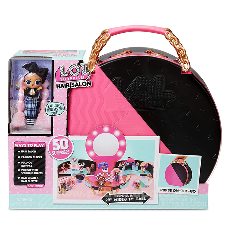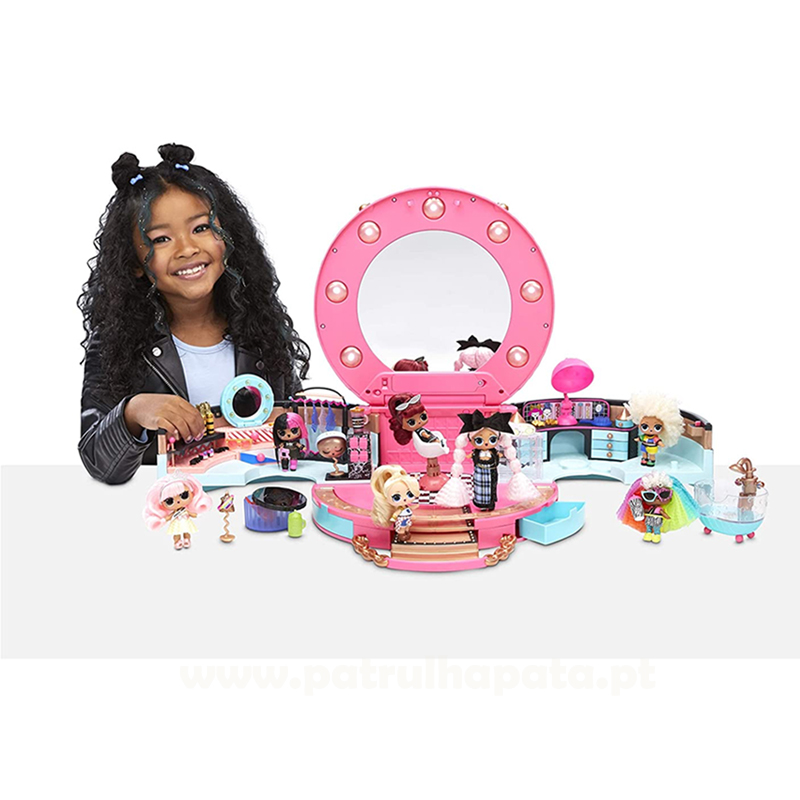 LOL Surprise! Salão de Beleza – É o melhor local para dar estilo e exibir o cabelo das tuas bonecas LOL Surprise. Neste salão de beleza vais encontrar cerca de 50 surpresas… vais ter tantas maneiras fabulosas de brincar, incluindo pentear o cabelo de bonecas no salão, armazenar roupas no armário da moda, exibir novos estilos na passarela pull-out, verificar novos estilos no espelho para você com luzes de trabalho e muito mais!
