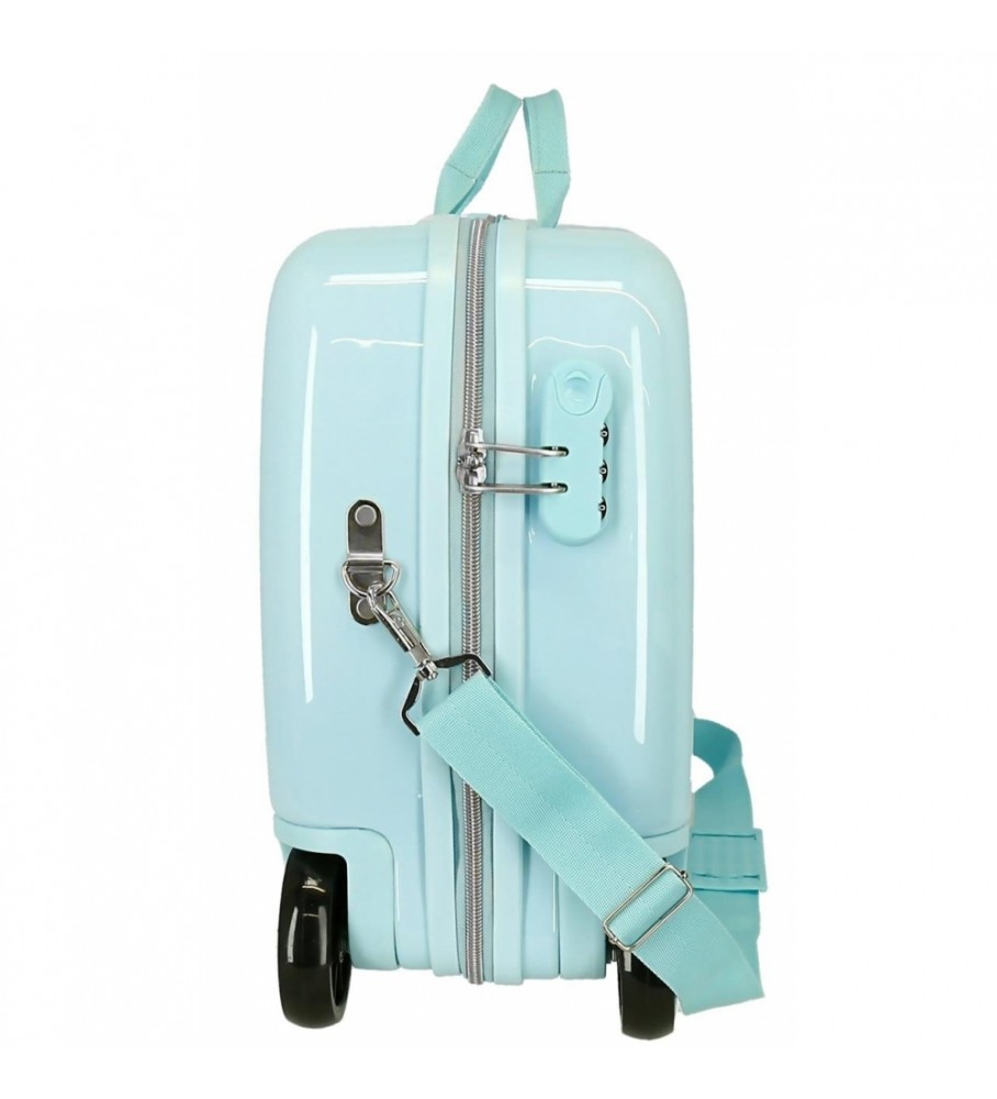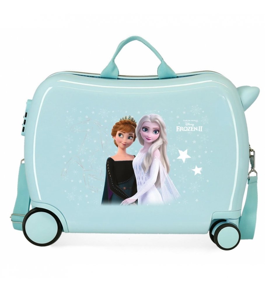 Mala para crianças 38 cm x 50 cm x 20 cm. Tem uma capacidade de 34L e pesa 2,1 kg. É feito de ABS, um material rígido e leve. Rodas dianteiras duplas com viragem multidireccional. O peso máximo recomendado que a mala pode suportar é de 30kg (perfeito para uma criança entre os 3 e 7 anos de idade). Faixas elásticas em ambos os lados para manter a bagagem organizada e fecho de combinação lateral para maior segurança. Cheio de estrelas, flocos de neve e uma luz especial, apresentamos a colecção Frozen Frosted Light de malas e sacos de toucador em turquesa. As Irmãs Elsa e Anna, e o seu belo cavalo em busca das Luzes do Norte desaparecidas, serão os vossos companheiros ideais para vos ajudar em qualquer viagem que fizerem. A mala childrenâ¤, bem equipada com elásticos e quatro rodas, irá certamente ajudá-lo a transportar tudo de forma limpa e confortável, uma vez que pode andar sobre ela enquanto é puxada. Parta para essa viagem de sonho em busca da sua felicidade.Referência: 2439821 Produto 100% original.