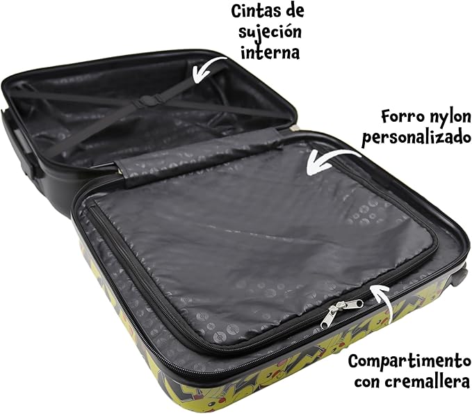 Tamanho: 50 x 34 x 21 cm. Mala de Cabine com 4 rodas giratórias e multidirecionais. Frente em filme PC impresso. Traseira em ABS. Rodas duplas personalizadas. Forro de nylon liso. Mala rígida muito resistente com alça extensível e fecho de correr feita no exterior com 95% ABS + 5% policarbonato e forro interior 100% Poliéster. Cumpre as medidas para malas de cabine estabelecidas pela Associação Internacional de Transporte Aéreo (IATA), o que o torna adequado para viagens de avião.