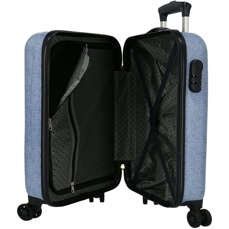 Mala de cabine de 38 cm x 55 cm x 20 cm. Tem uma capacidade de 34 L e pesa 2,6 kg. Feito de ABS, um material resistente e leve.