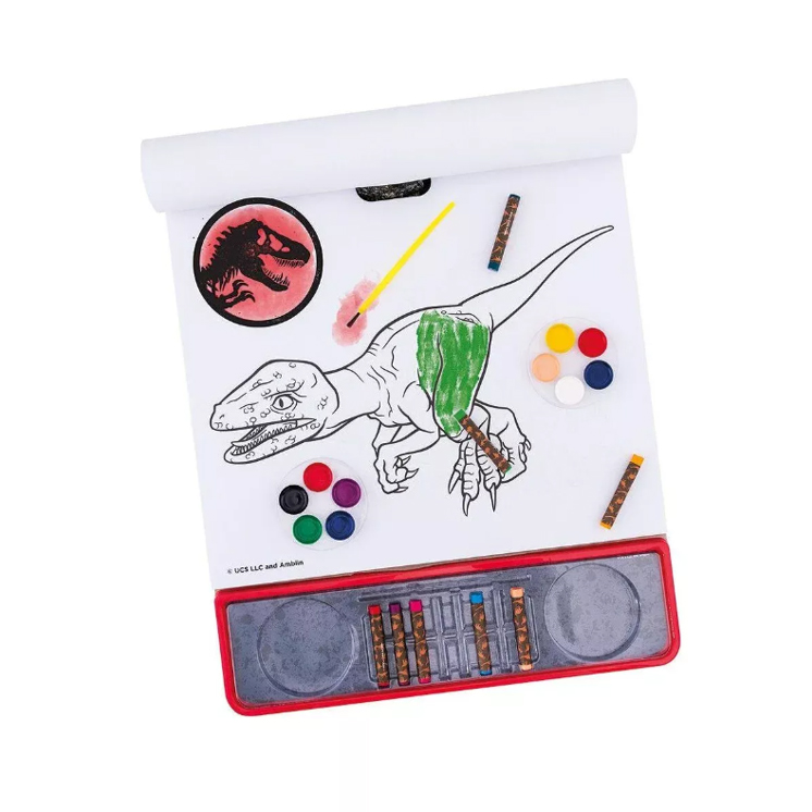Escolha uma cor entre os gizes de cera ou misture as aquarelas que desejar e pinte-as em vários cenários. Para um resultado mais impressionante, adicione adesivos do Jurassic World, escolhendo entre uma grande variedade de adesivos. O resultado vai surpreender você. Cada conjunto inclui 1 bloco de desenho com 25 páginas pré-impressas com desenhos de Jurassic World 10 aquarelas 1 pincel 8 giz de cera 1 folha de adesivos Cada criança esconde um pequeno artista dentro! AS Giga Block é uma ideia única de um grande bloco de desenho, maior que o normal, para desenhos especiais. Através do desenho com AS Giga Block a criança conhecerá o mundo de seus heróis preferidos, colorindo-os com os mais diversos tipos de cores.