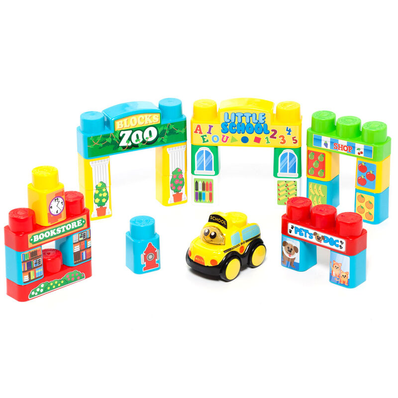 Permite guardar os blocos no interior e as suas pernas são dobráveis ​​para o guardar em qualquer lugar. Também inclui um carro eletrônico com luzes e sons.