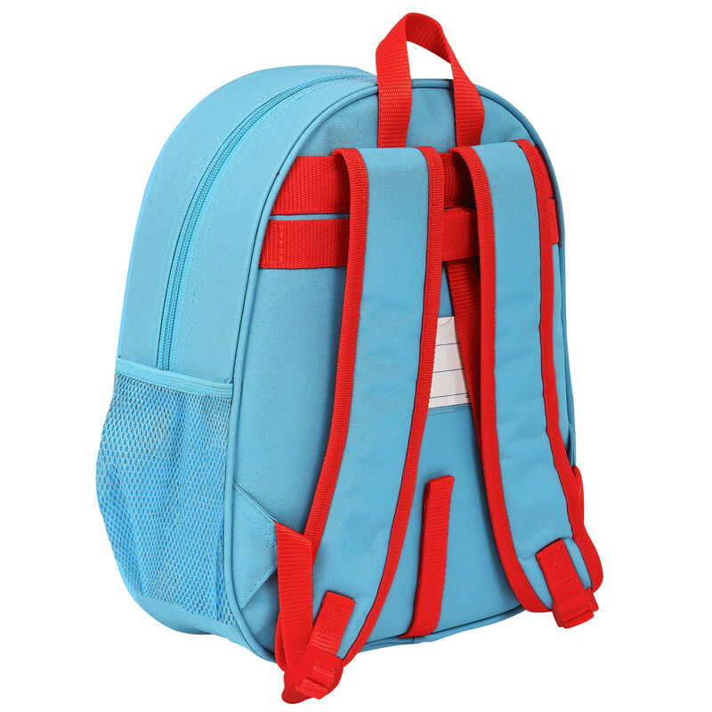 Tamanho: 27x32x10cm. Adaptável ao carro. Design frontal 3D termoformado. Bolso porta-garrafas lateral. Cartão de identificação pessoal. Alças de ombro acolchoadas com malha anti-suor. Manuseie na parte superior.
