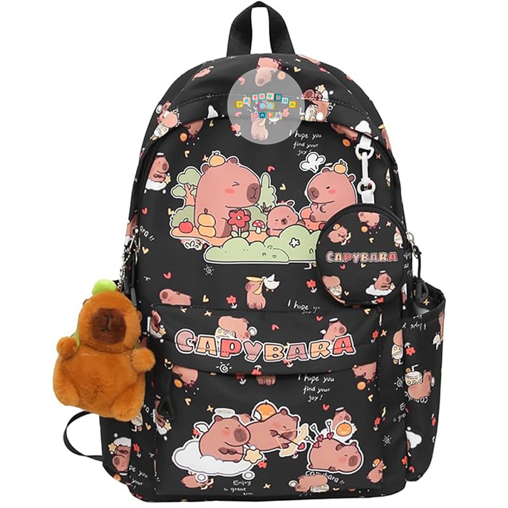 Motivo divertido de carpincho: esta mochila capibara apresenta um adorável design de carpincho que adiciona um toque divertido, kawaii e único a qualquer roupa. Ideal para os fãs deste animal bonito, seja como mochila capibara ou como acessório escolar. Grande capacidade: com vários compartimentos, esta grande mochila escolar permite organizar livros, cadernos e um estojo com facilidade. É perfeita para o dia a dia em aula e destaca-se entre as mochilas escolares pela sua funcionalidade. Material impermeável: fabricado com tecido impermeável de alta qualidade, esta mochila de capibara protege os seus pertences mesmo em dias chuvosos. É uma escolha duradoura e prática para quem procura uma mochila escolar capybara resistente e bonita. Leve e confortável: com peso ideal e design ergonómico, esta mochila escolar capybara combina conforto e resistência. Perfeita para meninas e meninos, adapta-se tanto como mochila capibara menina como para mochila capibara menino em qualquer ocasião. Acessórios elegantes incluídos: este conjunto inclui uma carteira e pelucheque fazem desta mochila estojo capybara uma escolha completa. Entre as mochilas para meninas, destaca-se pelo seu estilo, funcionalidade e possibilidade de personalização.