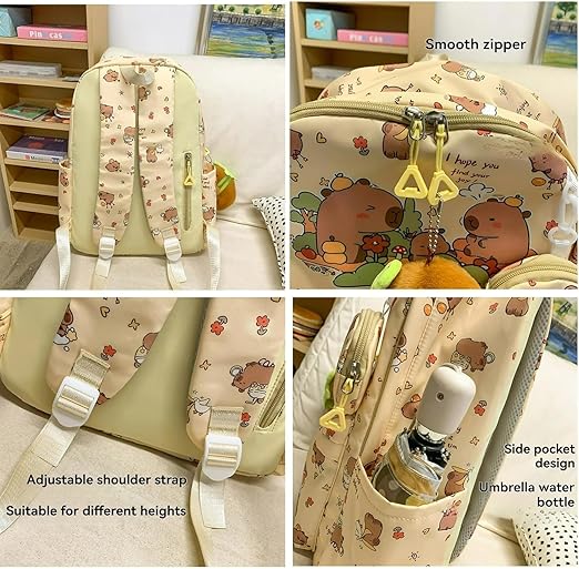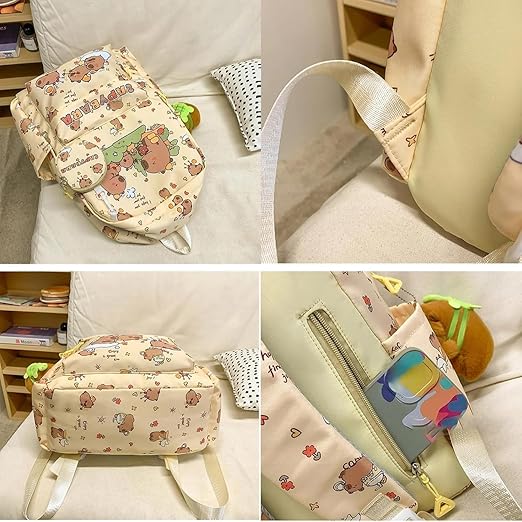 Motivo divertido de carpincho: esta mochila capibara apresenta um adorável design de carpincho que adiciona um toque divertido, kawaii e único a qualquer roupa. Ideal para os fãs deste animal bonito, seja como mochila capibara ou como acessório escolar.