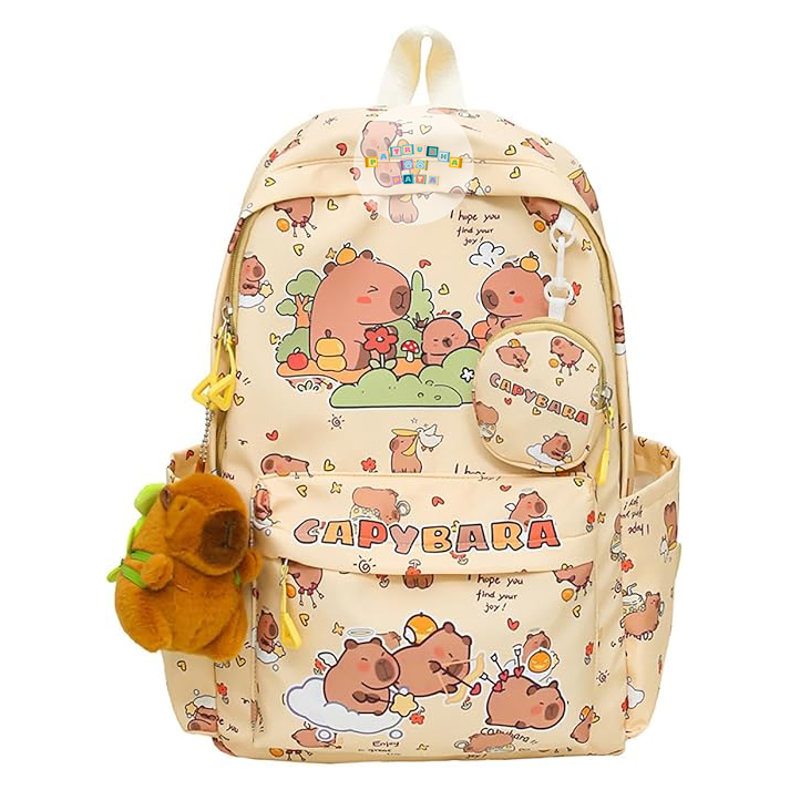 Acessórios elegantes incluídos: este conjunto inclui uma carteira e pelucheque fazem desta mochila estojo capybara uma escolha completa. Entre as mochilas para meninas, destaca-se pelo seu estilo, funcionalidade e possibilidade de personalização.