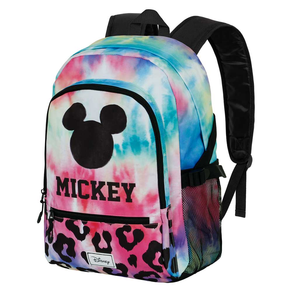 Mochila Fight FAN 2.0 Mickey Mouse Tie. Mickey Mouse. Mochila urbana leve com compartimento único e dois bolsos frontais. Alças acolchoadas ajustáveis, dois bolsos laterais em malha e alça traseira adaptável ao carrinho. Interior com forro e bolso acolchoado para dispositivos eletrônicos.