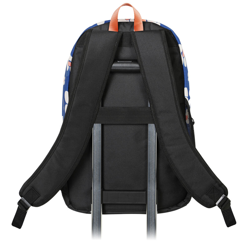 Mochila urbana leve com um único compartimento. Forro interno com bolso para dispositivos eletrônicos. Bolso frontal, alças acolchoadas ajustáveis ​​e alça traseira adaptável ao trolley