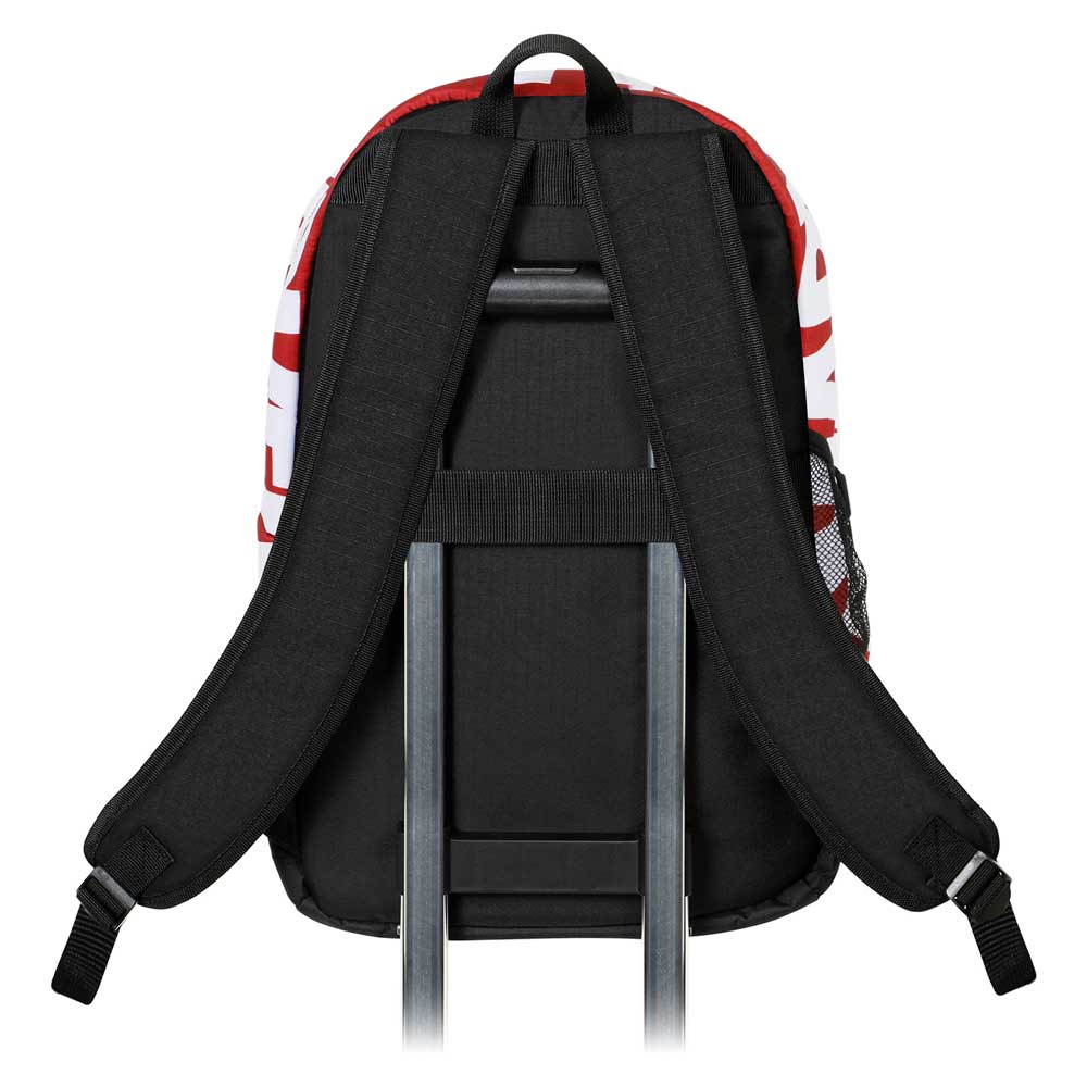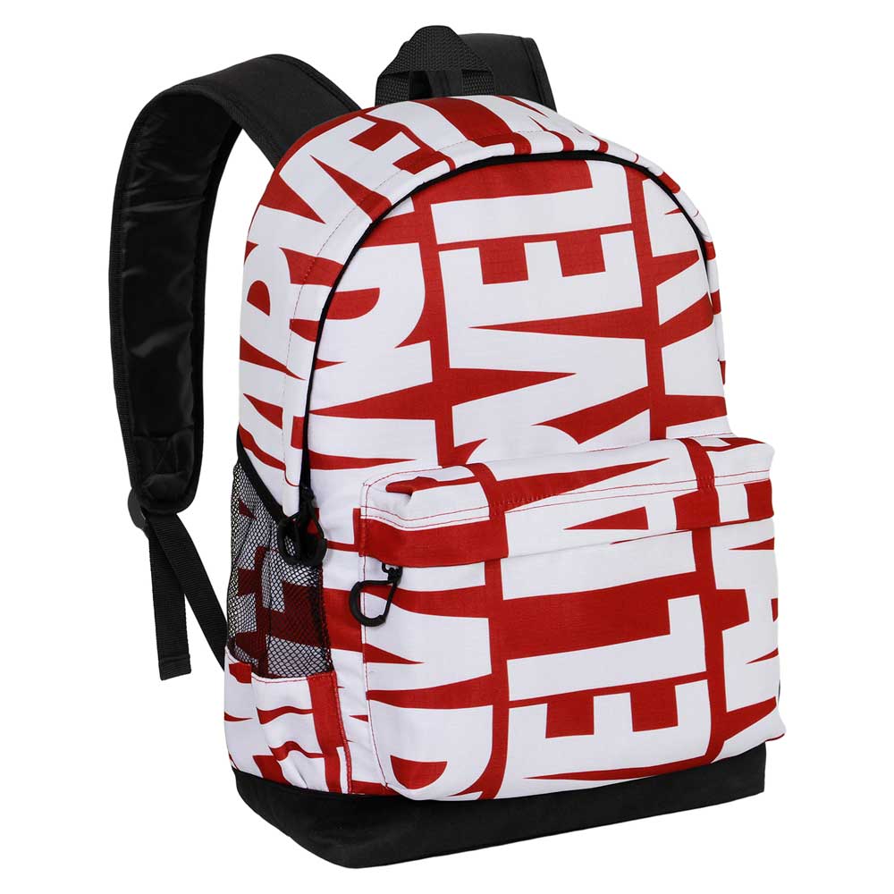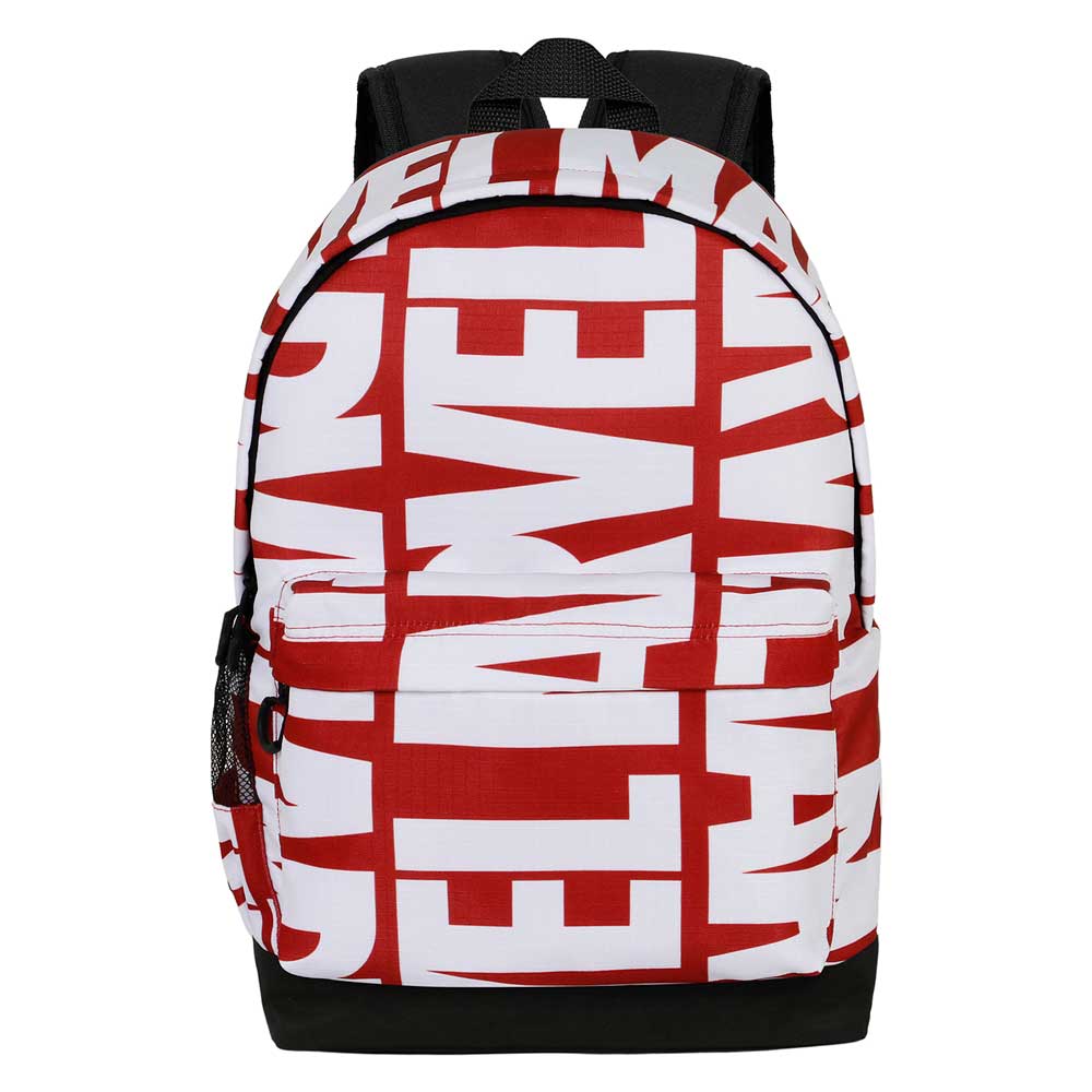 -Mochila Marvel Marvelmania ECO 2.0. Maravilha. Mochila urbana de um compartimento, feita de material reciclado de alta resistência (RPET). Corpo exterior repelente de líquidos com bolso frontal e bolso lateral em rede. Forro interno com bolso acolchoado para dispositivos eletrônicos. Alças de ombro reforçadas e alça traseira trolley.