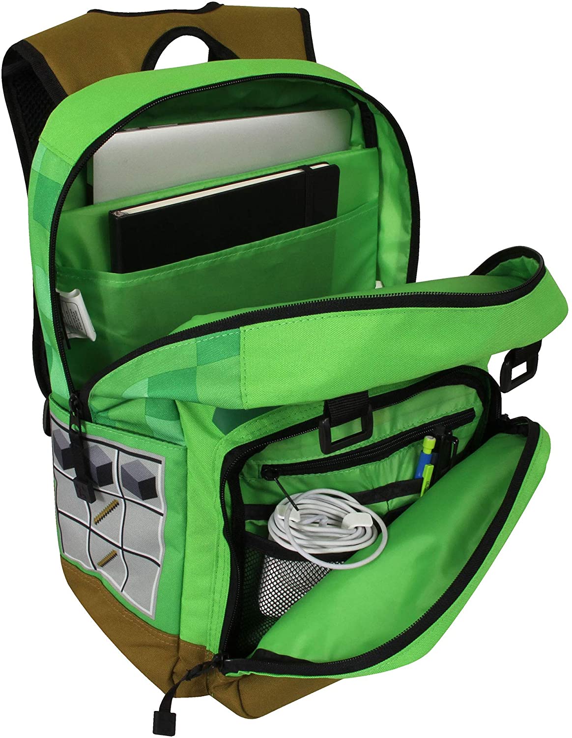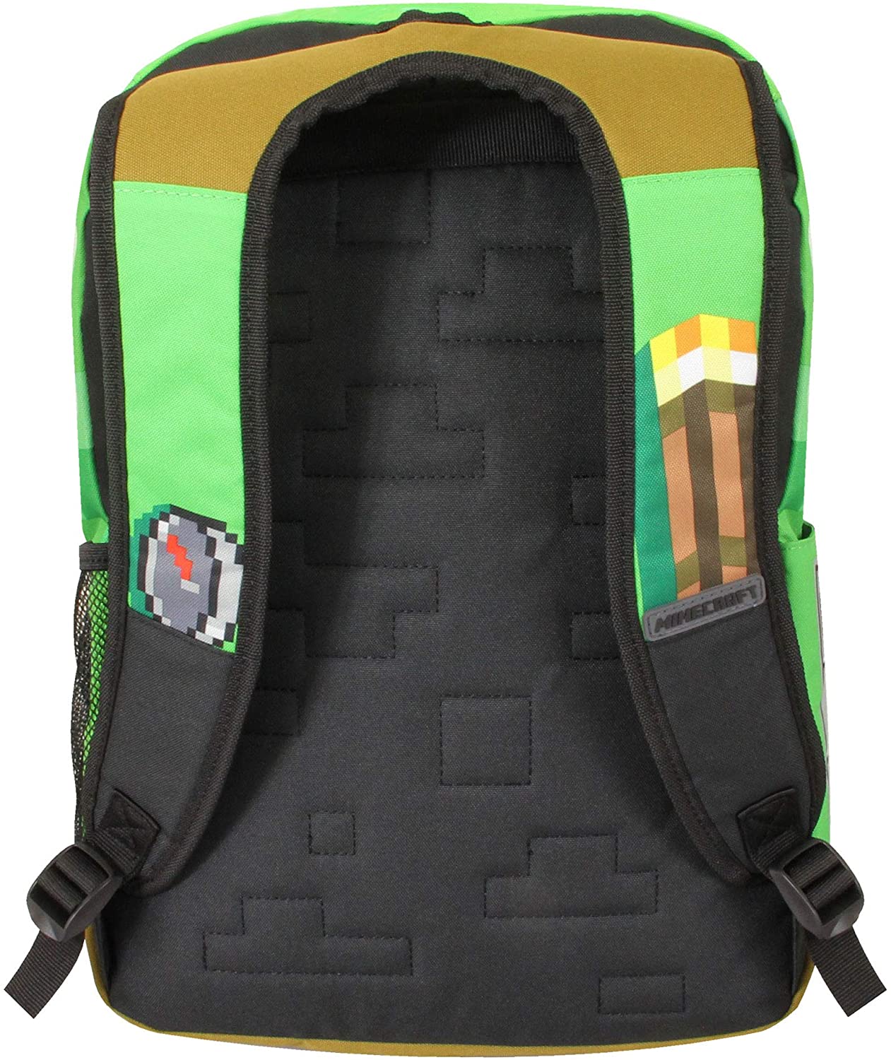 Mochila escolar Produto oficial. Um grande compartimento principal com uma capa bolsa para laptop, um bolso frontal com zíper com bolsos adicionais internos, dois porta-garrafas laterais e alças largas acolchoadas contra uma parte traseira acolchoada.