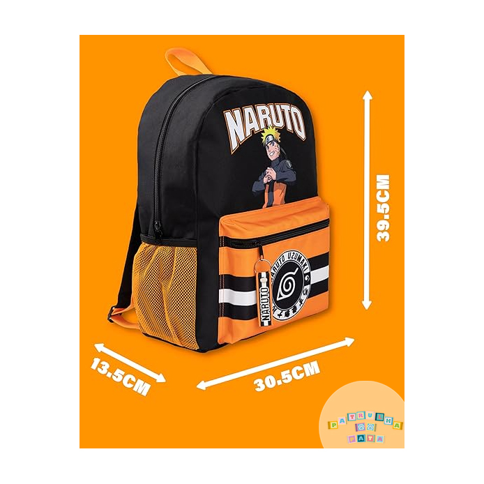 NINJA GEAR: Inspirada na série de anime cheia de ação, esta mochila preta e laranja de Naruto Shippuden 39,5 cm x 30,5 cm x 13,5 cm é essencial para jovens ninjas em treino.