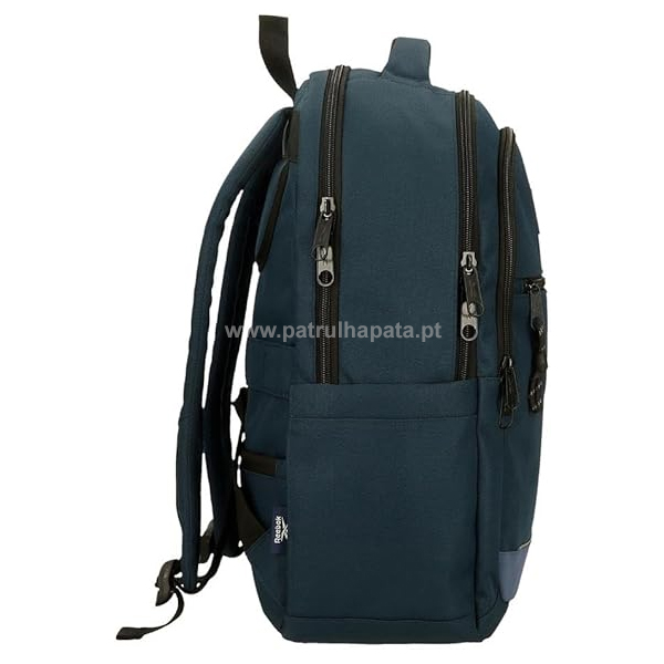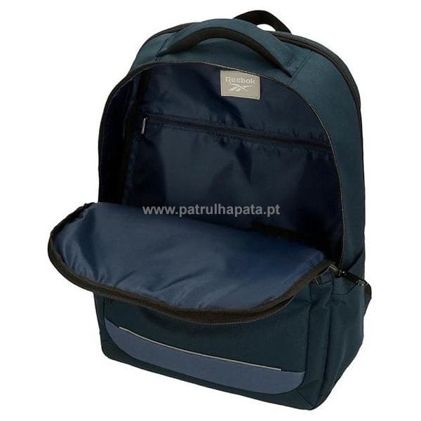 Compartimento principal duplo com espaço específico para computador e outro para tablet. Organizador interior com duas ranhuras para bolis, e dois compartimentos para guardar acessórios, um deles com fecho de correr.