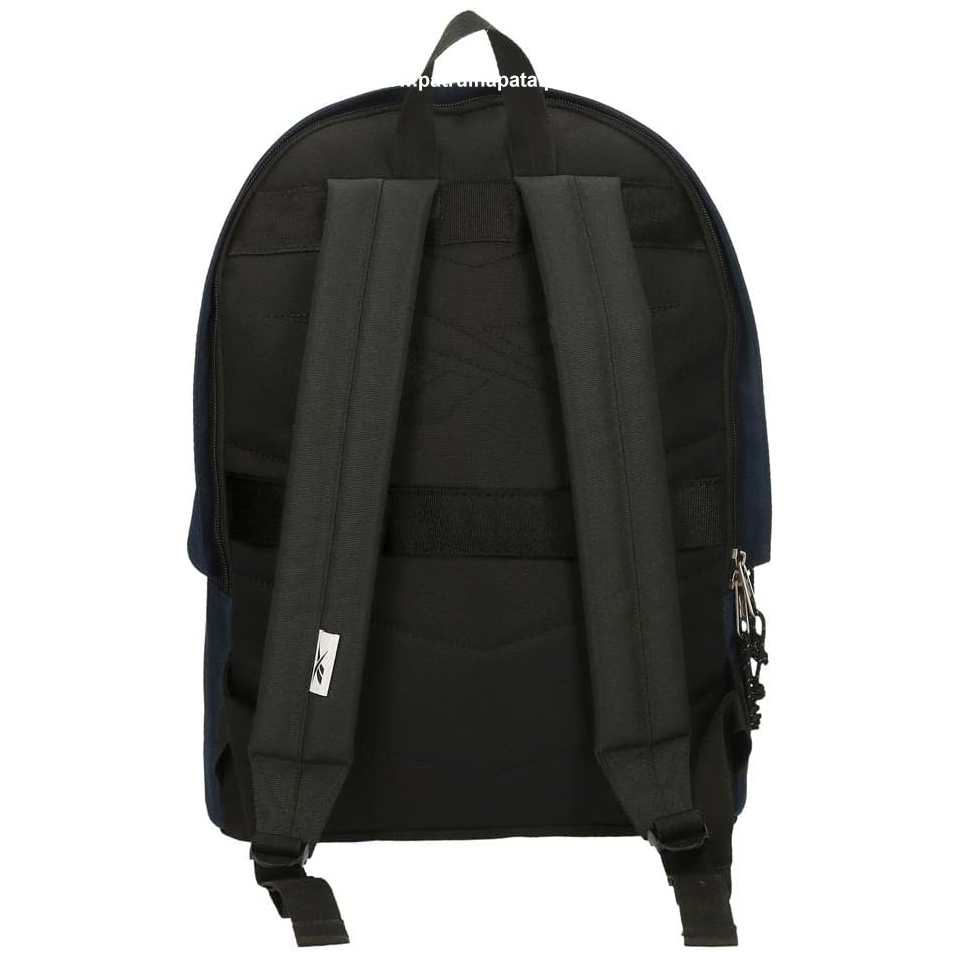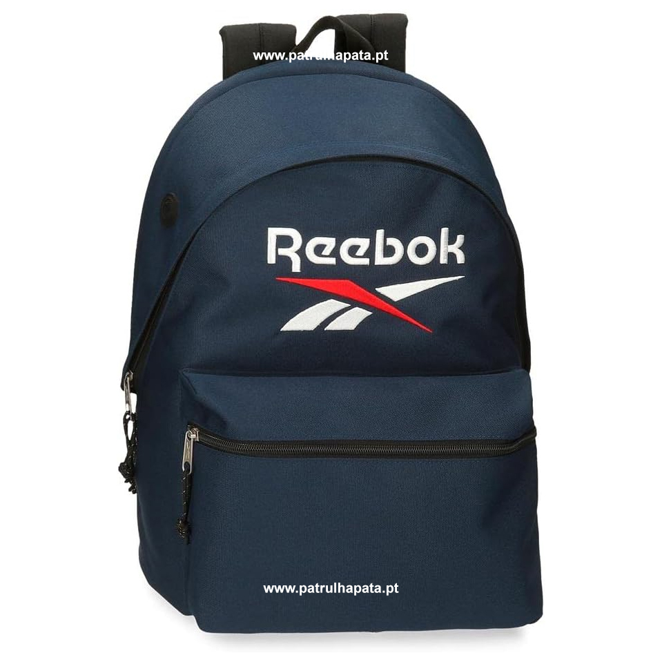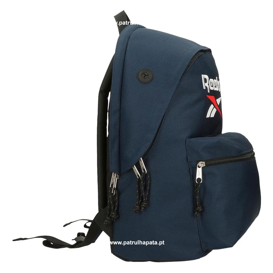 Mochila de 31 cm x 44 cm x 17,5 cm, fabricada em poliéster.