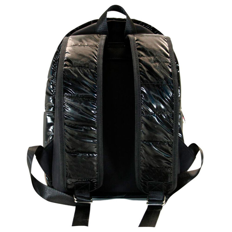 Tamanho: 32x24x16cm. Mochila urbana com um compartimento. Corpo exterior acolchoado com um bolso frontal com fecho e dois bolsos laterais abertos. Interior com forro e bolso.