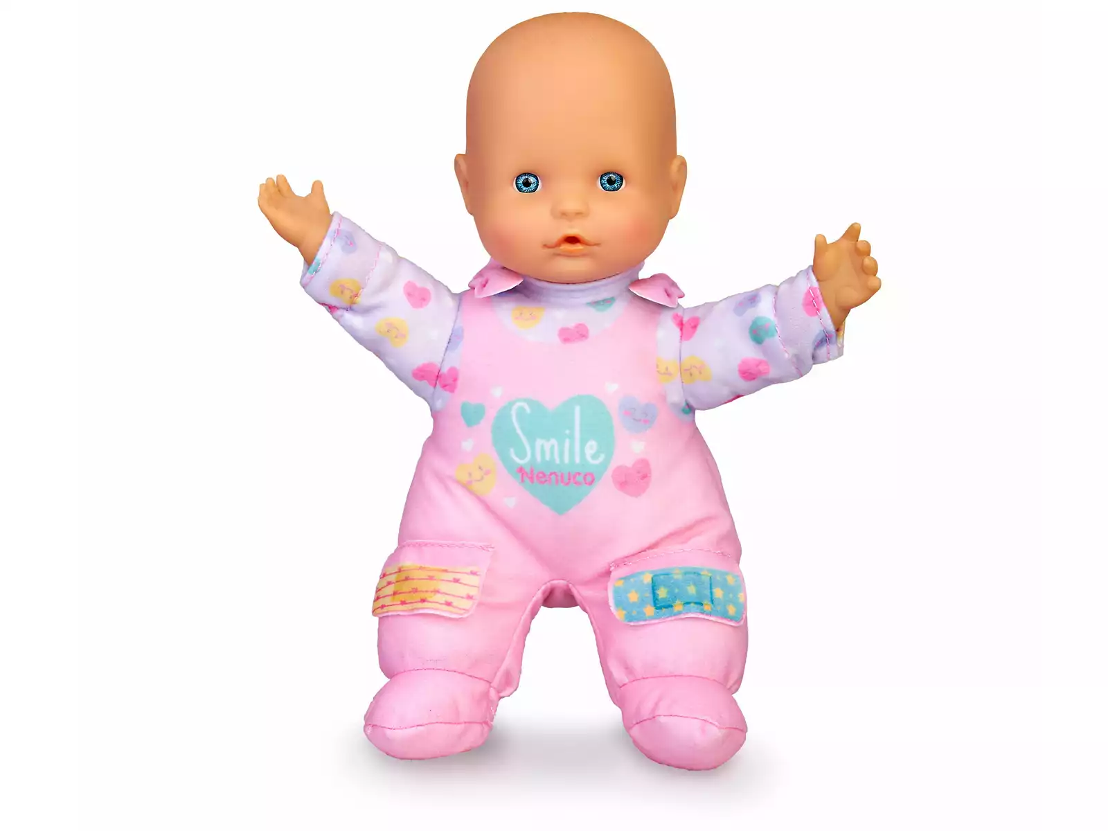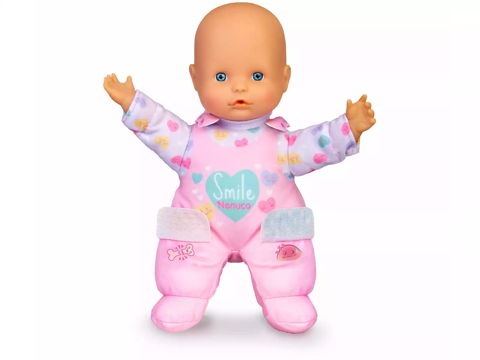 Inclui: 1 boneca bebé Nenuco com corpo de material macio, cabeça e mãos de vinil suave, roupa de cor rosa e lilás com estampado de corações, sensores nas suas mãozinhas que ativam alguns sons, sensores sob os pensos dos pés que ativam outros sons de choro e mais detalhes fantásticos.