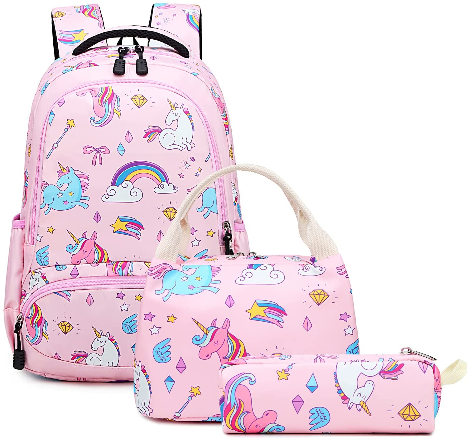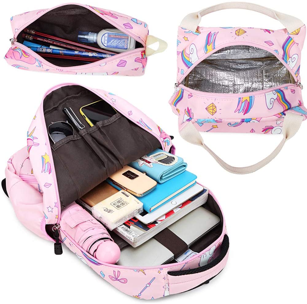 Mochila unicórnio: as mochilas escolares primárias 3 em 1 vêm com mochila para meninas, lancheira térmica.