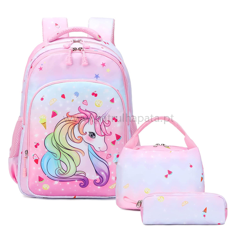 Pack Escolar Unicorn fruits - Mochila + lancheira + porta-lápis
